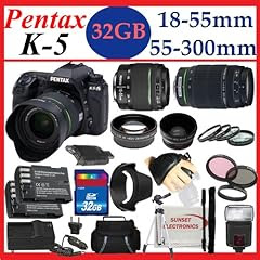 Pentax K-5 16.3 MP Digital SLR with 18-55mm Lens and 3-Inch LCD (Black) and Pentax DA 55-300mm f/4-5.8 ED with SSE 32GB Amazing Pro Package Includes 2 Batteries and charger, 2 lenses, Filter Kit Plus Much more