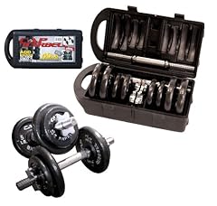 This 40 lb dumbbell set is convenient and great for both beginners and the advanced fitness enthusiast. The different plate weights come in a plastic case and dumbbells can be adjusted according to weight preference. Warning: This product contains one or more phthalate chemicals known to the state of California to cause birth defects and other reproductive harm. Consumer may return the product for a full refund, including shipping cost for both receipt and return of the product within 15 days of his or her receipt.Always pay through Amazon.com Shopping Cart or 1-Click.Your purchase will be protected by the A-to-Z Safe Buying Guarantee. Never respond to requests to send funds via wire transfer. Learn more about Safe Online Shopping.Amazon.com Details Enjoy the versatility of gym equipment from the comfort of your own home with the Cap Barbell 40 Pound Dumbbell Set. Equipped with four 2.5-pound plates, four 5-pound plates, and two handles and collars, the set allows you to work with a variety of interchangeable weights in one easy-to-use and store set. The sturdy plastic carry case keeps the weights organized and accessible when not in use and also makes it possible to carry your weights with you so you never have to leave your training regimen behind.Designed for high-performance comfort, the Cap Barbells feature ergonomic grips, comfort handles, and rubber trim collars. The durable cast iron plates have a semi-gloss finish for long-term rust- and maintenance-free use, and the collars are threaded for a safe and secure fit to the handles. The carry case is not bulky, measuring just 20 inches long by 9 inches wide, and weighs 41.15 pounds in total.