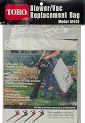 The Toro blower vac replacement vacuum bag replaces original Toro blower vacuum bags. It's made from durable canvas, has a large opening for easy disposal of mulched debris, and attaches to your blower with a plastic tie. A heavy-duty zipper keeps this bag secure, and an adjustable shoulder strap makes transportation easy.Always pay through Amazon.com Shopping Cart or 1-Click.Your purchase will be protected by the A-to-Z Safe Buying Guarantee. Never respond to requests to send funds via wire transfer. Learn more about Safe Online Shopping.Amazon.com Details [Read more Toro Blower 51601 Vac Replacement Vacuum Bag]